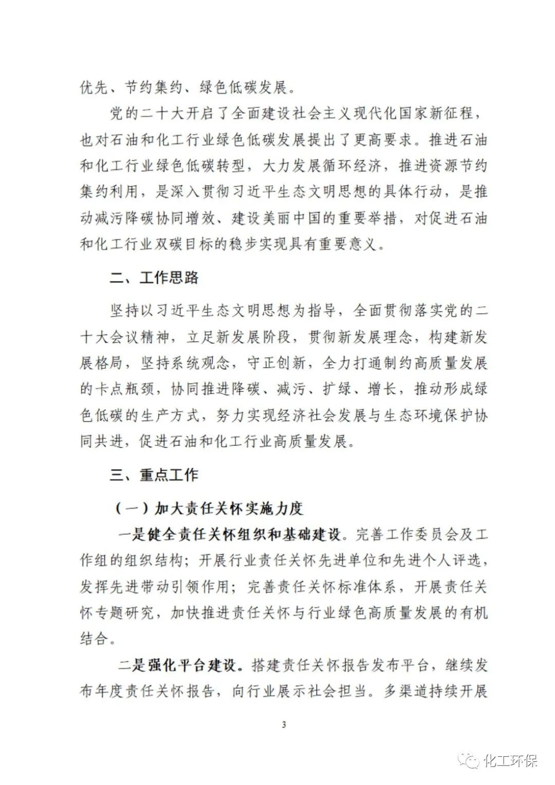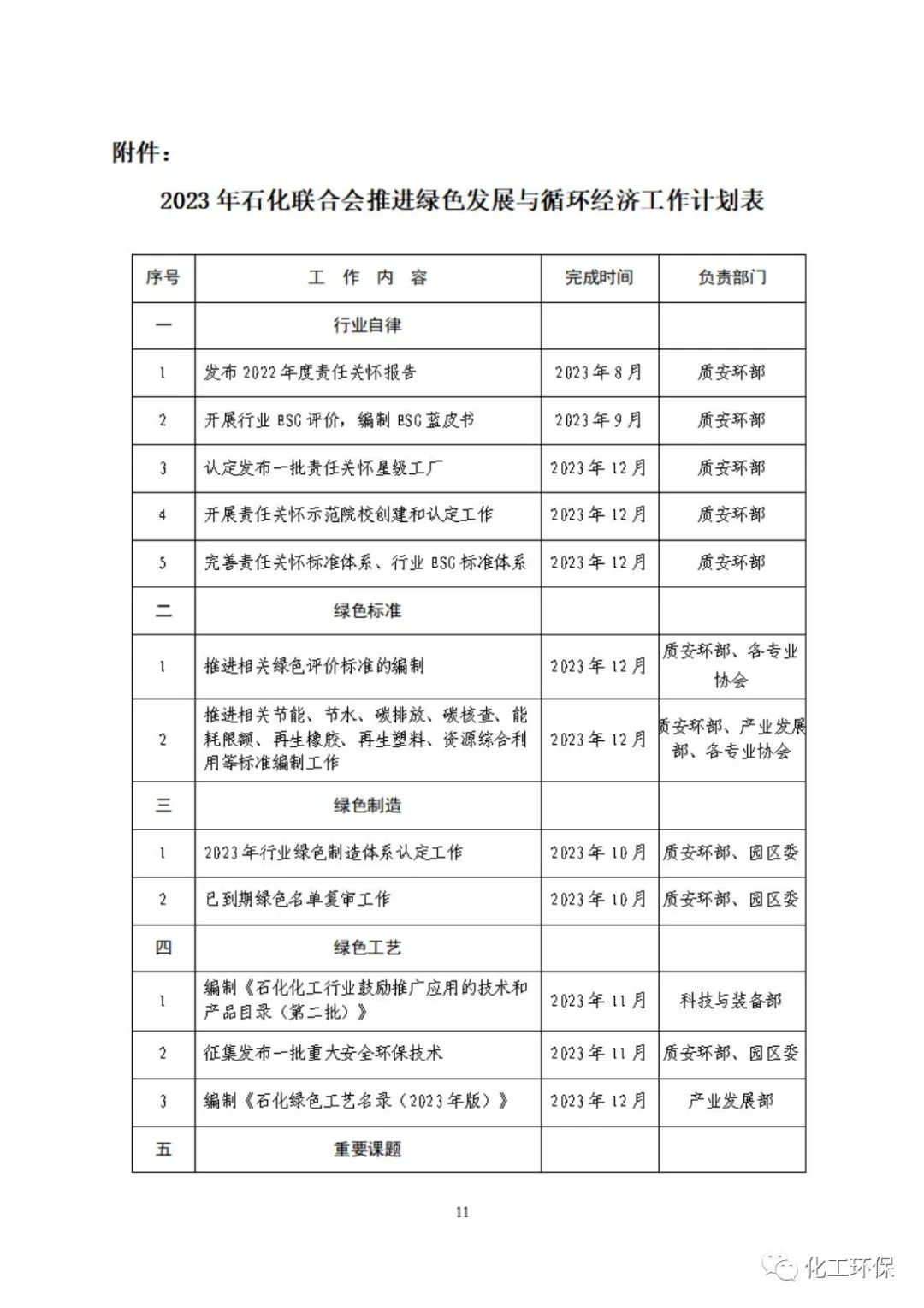 为深入贯彻党的二十大精神,认真落实《“十四五”工业绿色发展规划》《石油和化学工业“十四五”发展指南》等文件要求,统筹推进石油和化工行业绿色低碳发展和循环经济工作,加快形成节约资源和保护环境的产业结构、生产方式,助力行业双碳目标稳步实现,我会研究制定了《2023年联合会推进绿色发展与循环经济工作方案》(附件)。现印发给你们,请各单位高度重视、认真贯彻落实,通过加强联动、发挥合力,进一步提升行业绿色低碳发展水平,服务高质量发展。