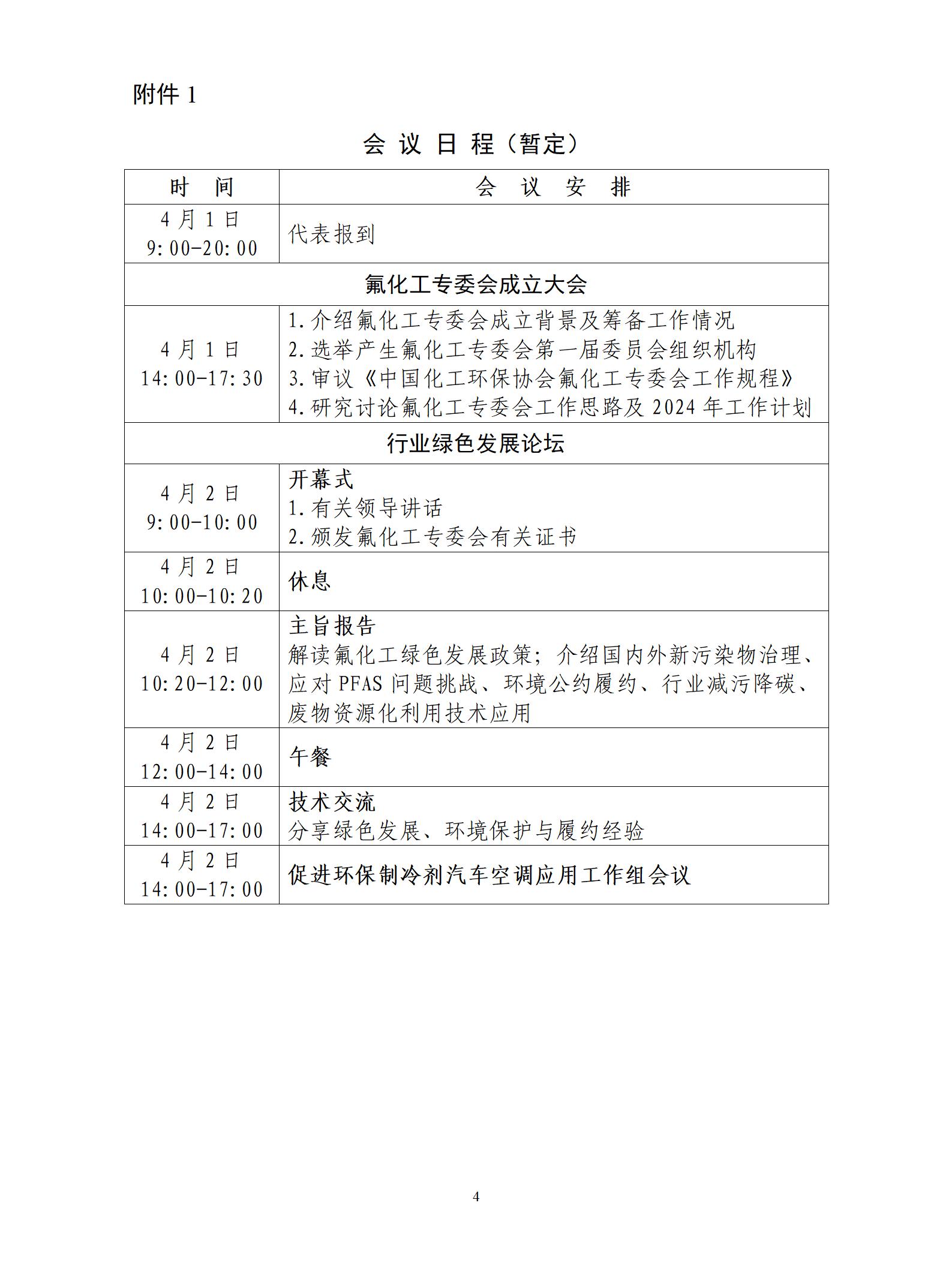 1.氟化工专委会成立大会:审议《中国化工环保协会氟化工专委会工作规程》;选举产生中国化工环保协会氟化工专委会第一届委员会组织机构;研究讨论氟化工专委会工作思路及2024年工作计划。